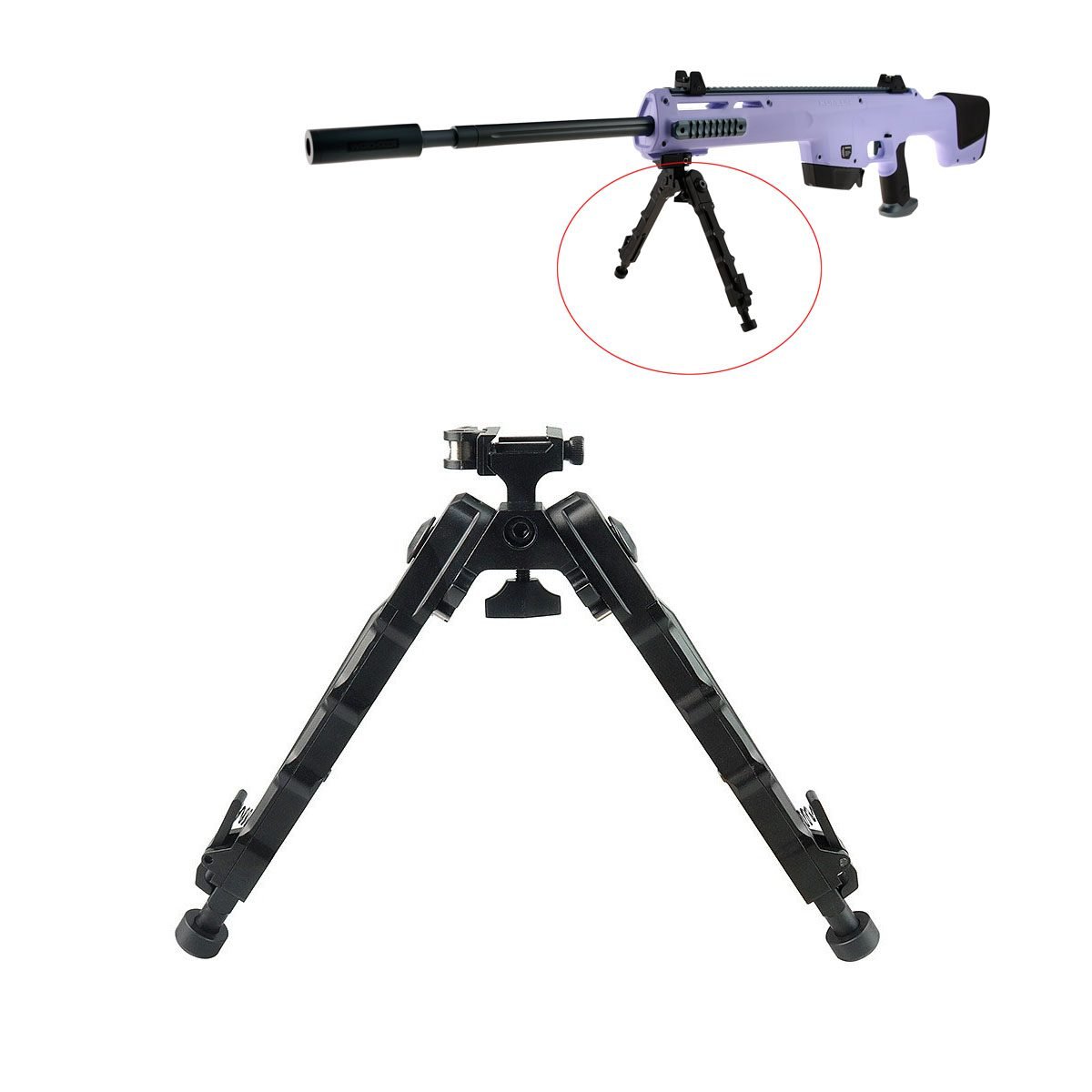 A solid, durable bipod built for stability and accuracy. This bipod provides a firm front-end rest for long-range setups, zeroing optics, or steady bench shooting. The legs deploy quickly and lock firmly into place, giving your Kunlun a stable shooting platform.