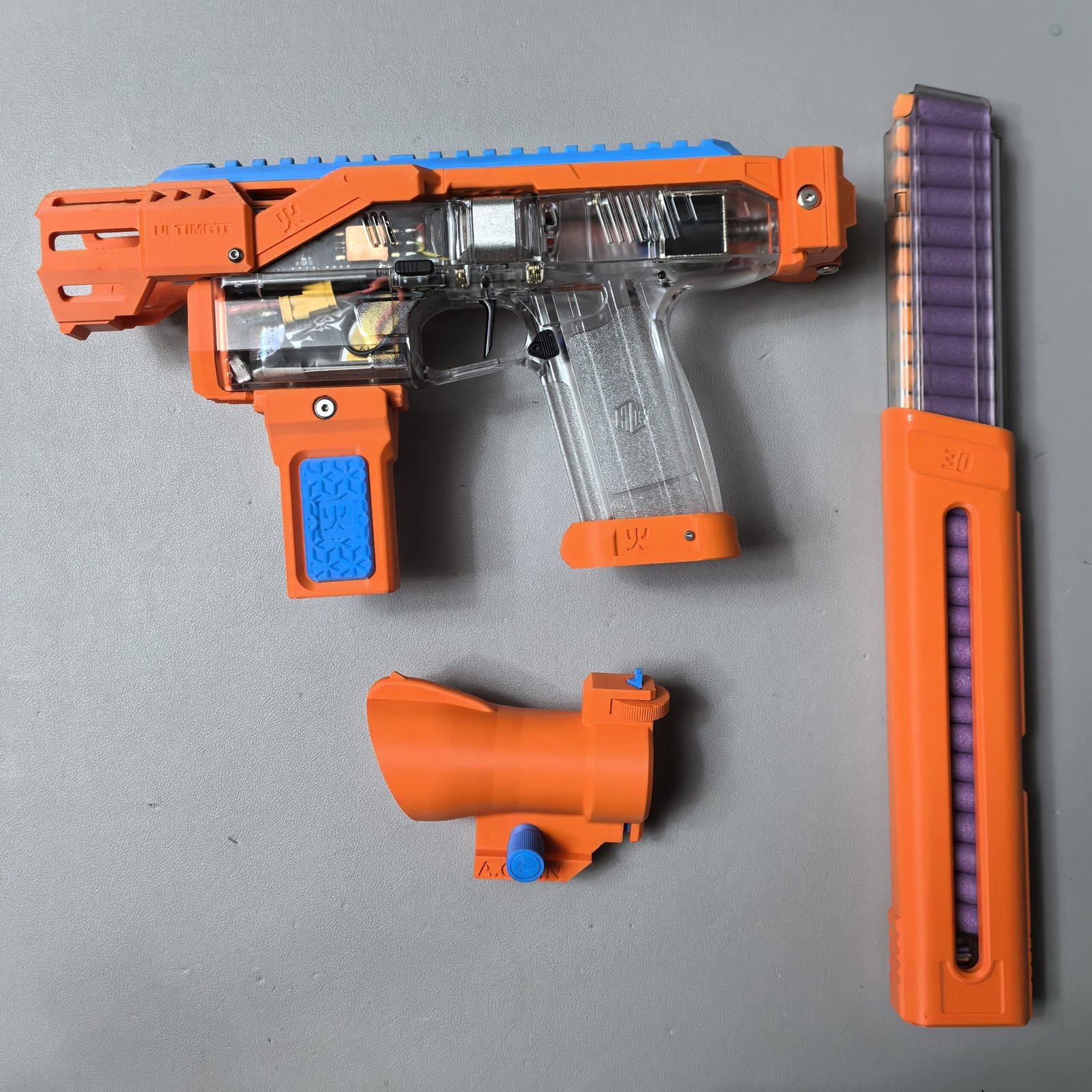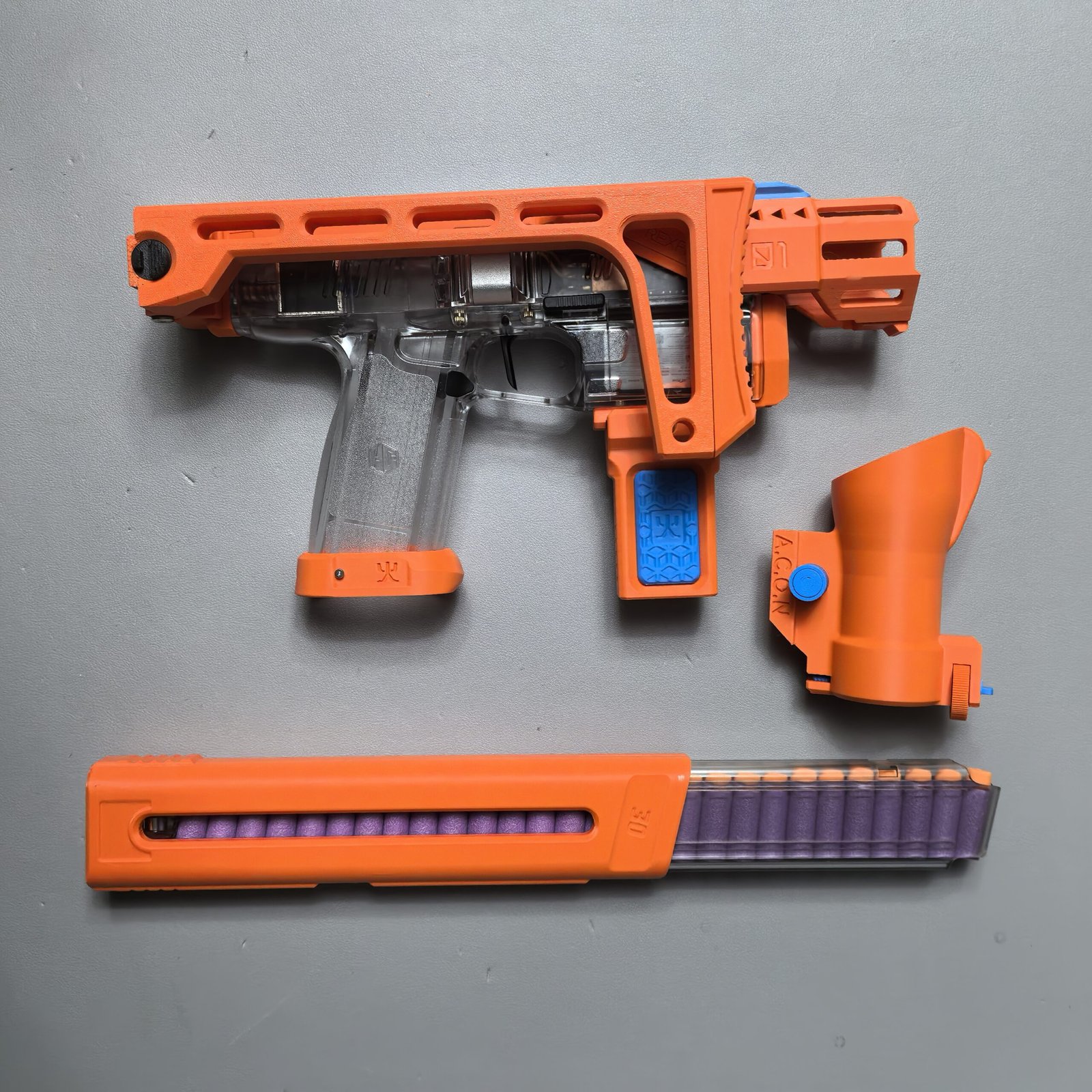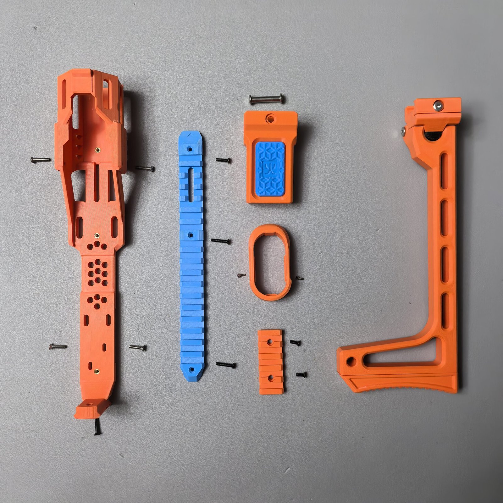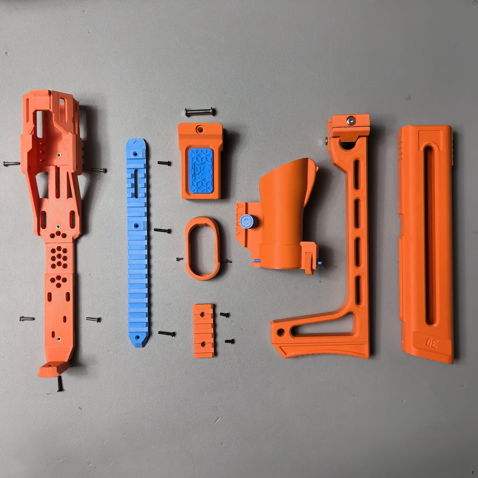 To offer more choices in colors and finishes, filaments from different brands are used. Some parts of certain blasters cannot be customized because carbon fiber–reinforced PA6CF is used for long-term durability. Each filament has its own advantages and disadvantages. Compared with PLA, PETG is more heat-resistant and less prone to degradation, while PLA tends to produce fewer printing defects. Compared with standard PETG, PETG HF (limited to materials on this website) is slightly less strong but has a more matte, less glossy finish.
