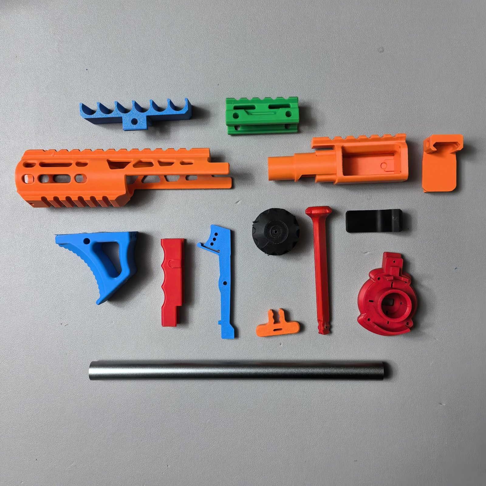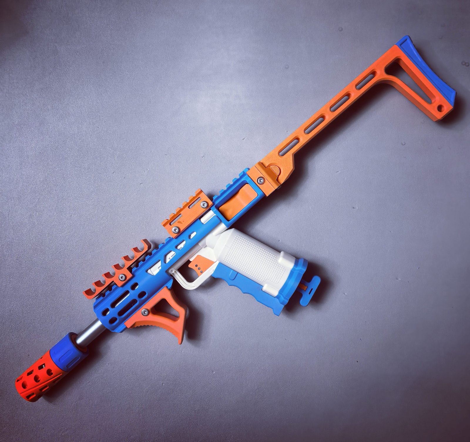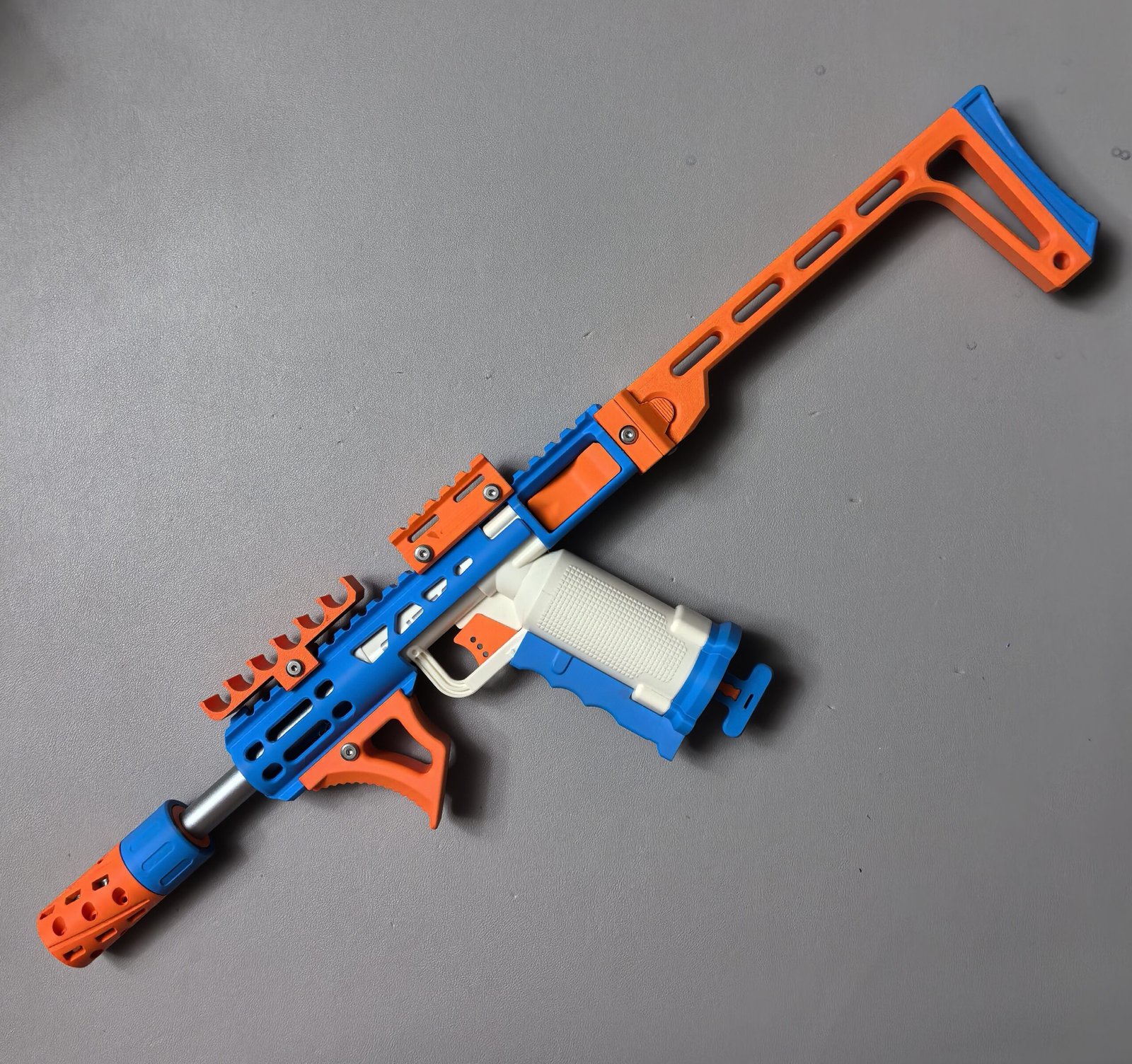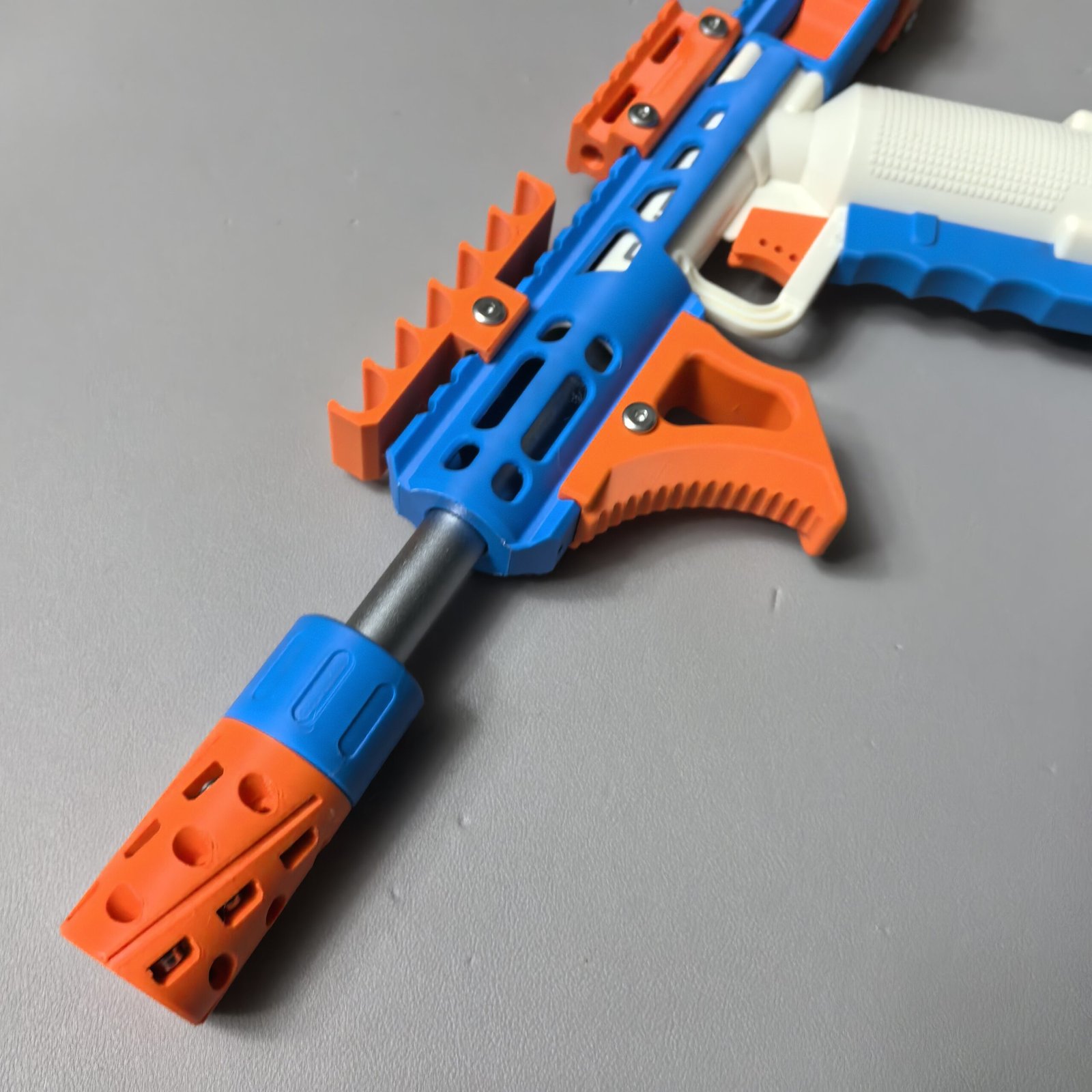 To offer more choices in colors and finishes, filaments from different brands are used. Some parts of certain blasters cannot be customized because carbon fiber–reinforced PA6CF is used for long-term durability. Each filament has its own advantages and disadvantages. Compared with PLA, PETG is more heat-resistant and less prone to degradation, while PLA tends to produce fewer printing defects. Compared with standard PETG, PETG HF (limited to materials on this website) is slightly less strong but has a more matte, less glossy finish.