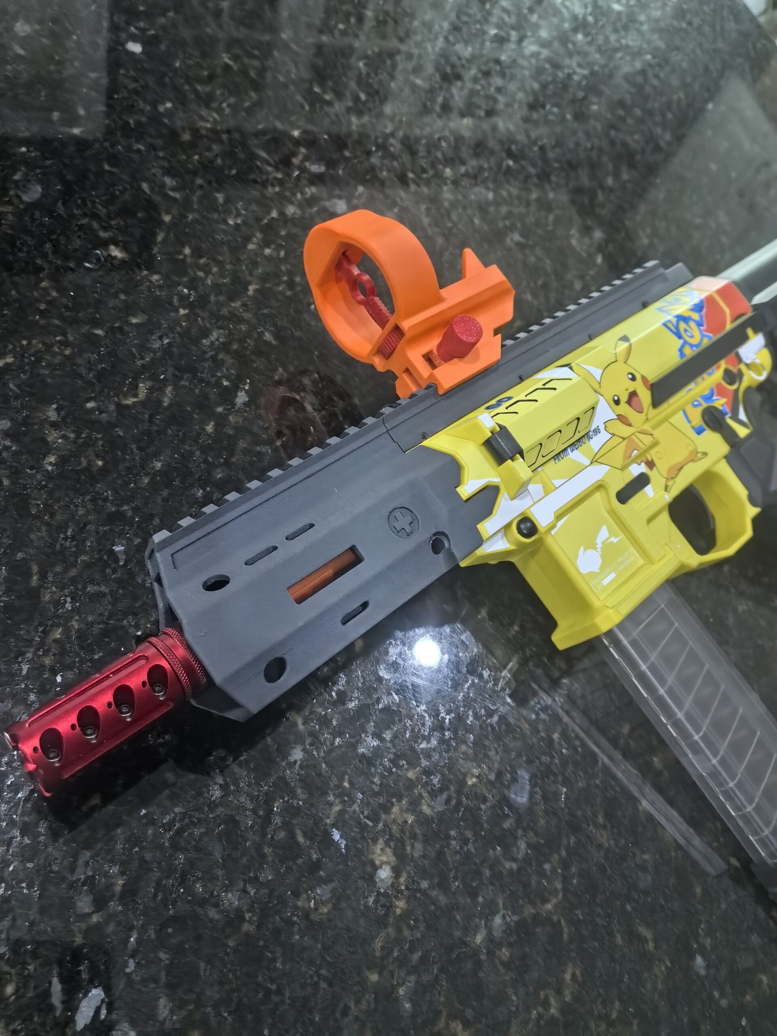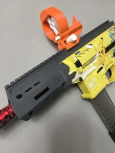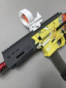 This compact red dot-style sight is designed specifically for foam dart blasters, offering a clean, lightweight profile with practical adjustability and a toy-friendly appearance.
