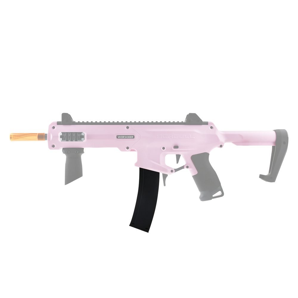 A reliable 15-dart curved magazine designed for blasters that use the Worker Talon/Seagull short-dart magwell system. The curved profile improves handling and maintains smooth dart feeding, especially during rapid cycling. Built from tough polymer with a consistent internal spring, this magazine is ideal for players who prefer a mid-capacity option with a comfortable shape.